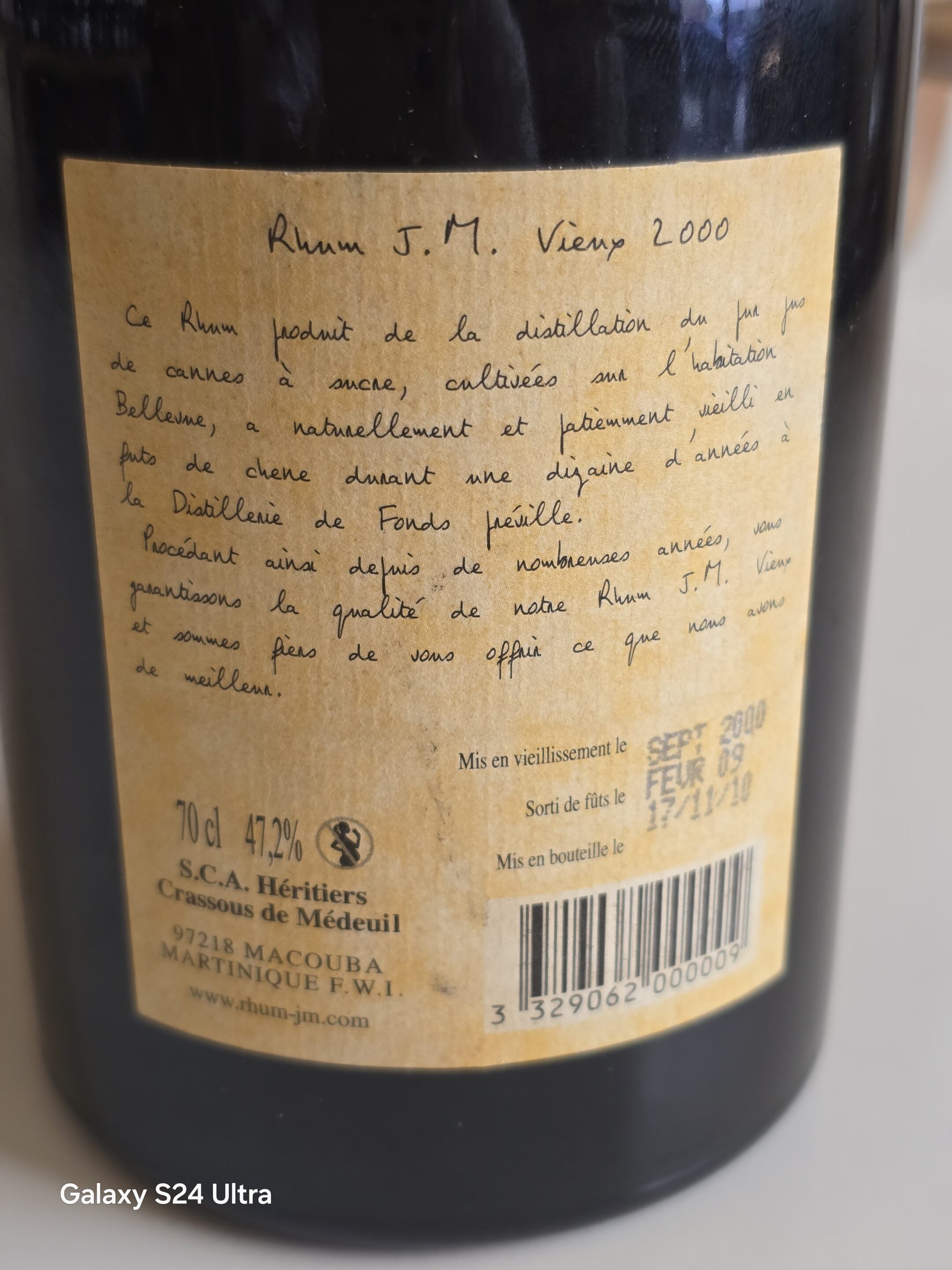 Le rhum vieux JM 70 CL 47.2° millésime 2000 à vieilli pendant 10 longues années en fût de chêne dans les chais de la distillerie à MACOUBA au pied de la montagne Pelée dans le nord-est de la MARTINIQUE . Un rhum vieux d’exception de la réputée distillerie JM .