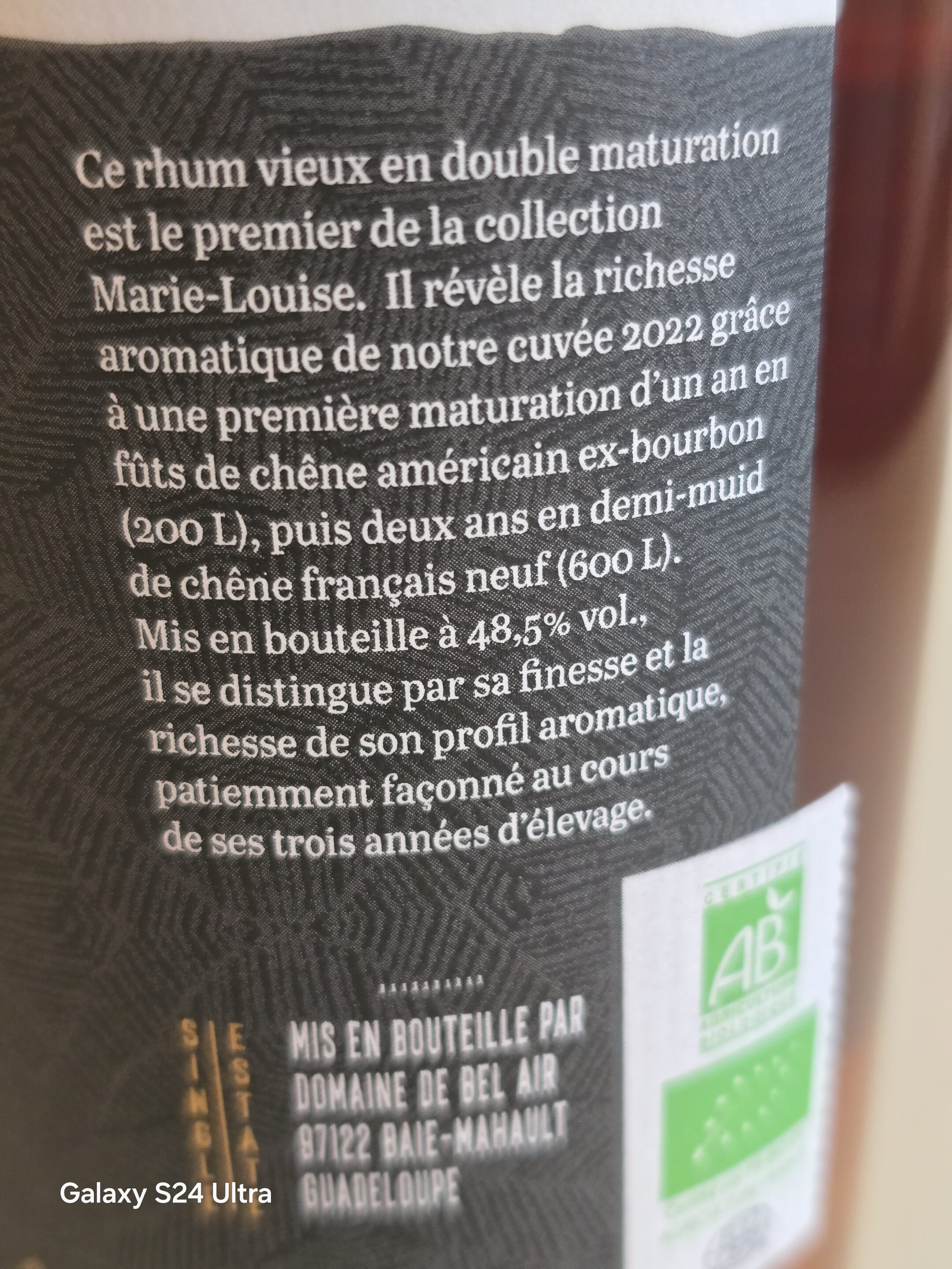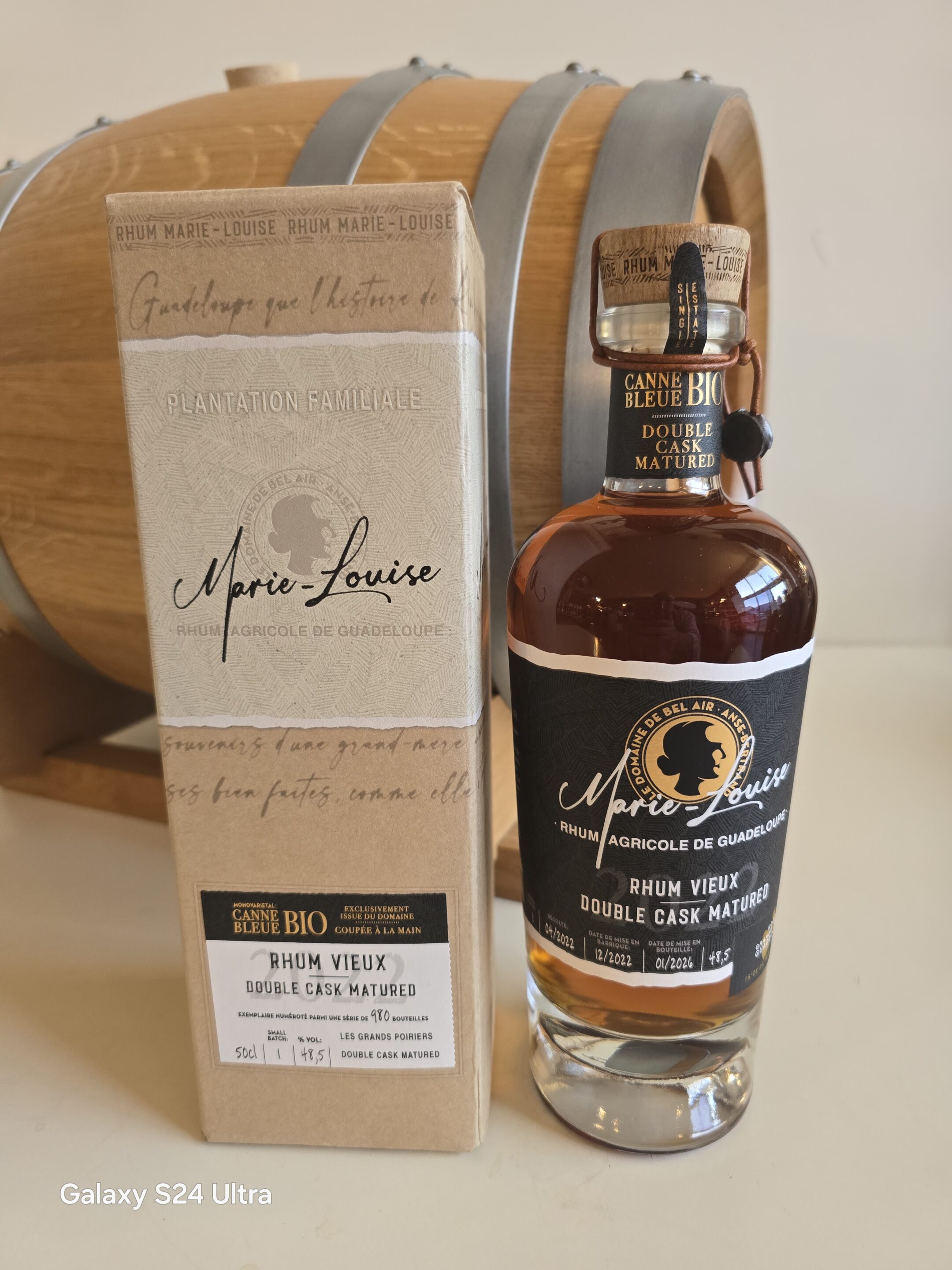Le rhum vieux MARIE LOUISE 50 CL 48.5° BIO MILLESIME 2022 issu de cannes bleue à vieilli en double maturation 1 an en fût de chêne américain ex bourbon puis 2 ans en demi -muid de chêne français pour une mise en bouteille à 48.5° . Il se distingue par sa finesse et la richesse aromatique . Une édition limitée et numérotée à 980 flacons . Un rhum vieux d’exception des rhums MARIE-LOUISE .