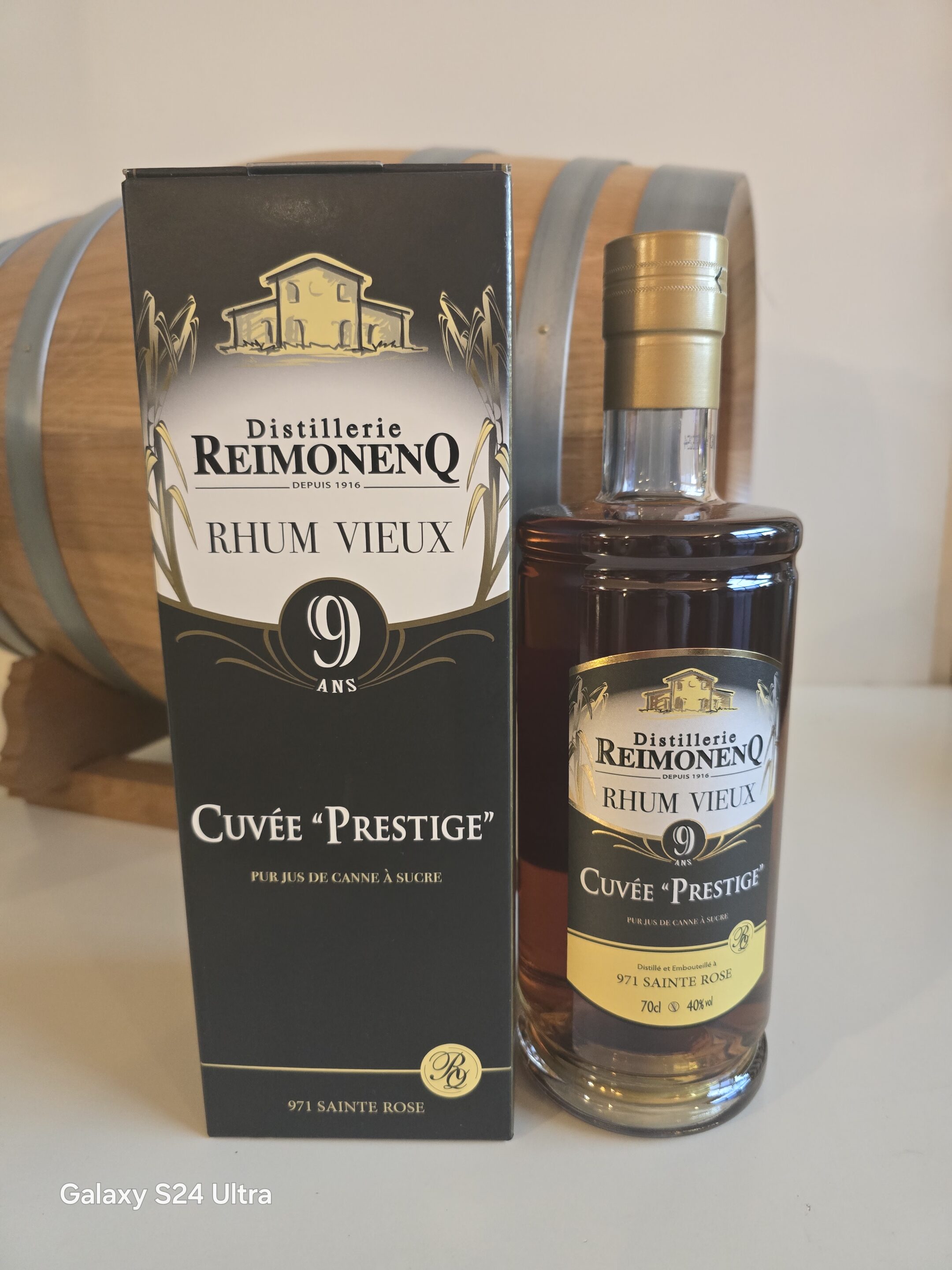 Le rhum vieux REIMONENQ 70 CL 40° 9 ANS CUVEE PRESTIGE à vieilli 9 longues années en fut de chêne dans les chais de la distillerie . Un rhum vieux gourmand , rond et de dégustation .Un rhum vieux de terroir de la réputée distillerie familiale REIMONENQ .